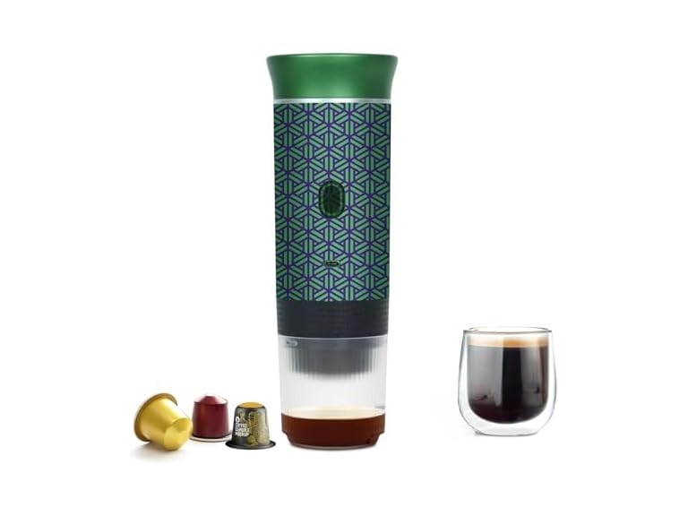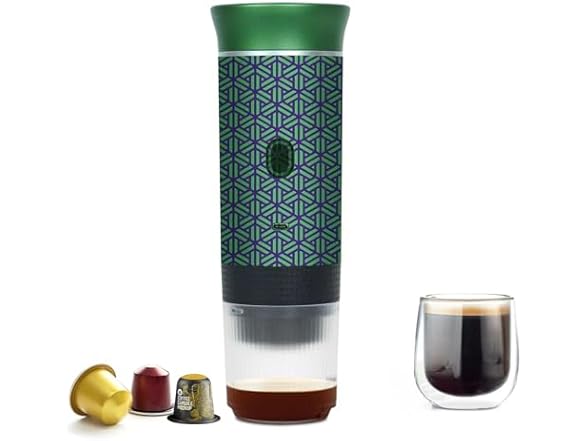 - Electric Travel Espresso Maker - One-touch operation brews hot or iced coffee in minutes. Leak-proof, insulated design. Includes a reusable cup, filter, capsule holder, and easy-to-clean parts.portable coffee maker