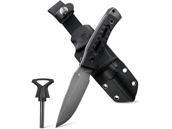- KYDEX SHEATH:Includes a durable KYDEX sheath with drainage holes,a dedicated slot for a ferro rod (fire starter) for quick access, and a belt loop for easy carry. This versatile fixed blade knife with sheath is a reliable companion for camping and outdoor adventures, making it a practical camping knife.