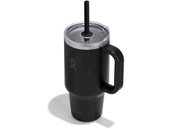 - (1) Hydro Flask 32oz Travel Tumbler with Handle, Clear Lid and Straw - Insulated Stainless Steel in 32oz Tonal Black