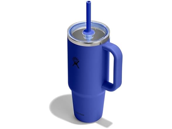 - 40 OZ CAPRI BLUE CLEAR LID TUMBLER: The insulated Hydro Flask 40 oz Travel Tumbler cup with easy flow straw is here to hydrate more and refill less. The insulation keeps drinks cold and the durable handle takes it to the next level. This tumbler can go anywhere, fitting most cupholders.