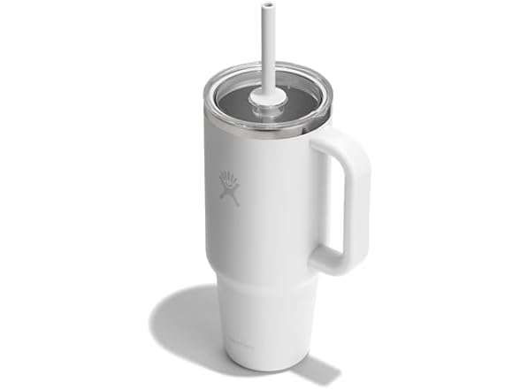 - 40 OZ WHITE CLEAR LID TUMBLER: The insulated Hydro Flask 40 oz Travel Tumbler cup with easy flow straw is here to hydrate more and refill less. The insulation keeps drinks cold and the durable handle takes it to the next level. This stainless steel tumbler can go anywhere, fitting most cupholders.