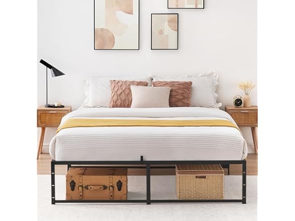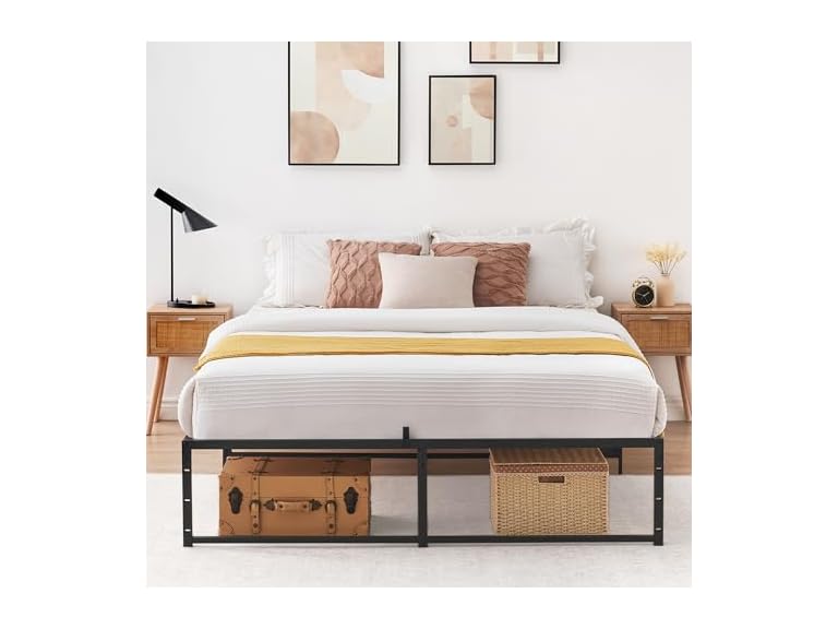 - AMPLE UNDER BED STORAGE: The tall metal bed frame with a 13''under-bed storage space solve your storage needs without compromising on style perfectly. Under the bed frame platform, you could make full use of the space to store extra odds and ends.
