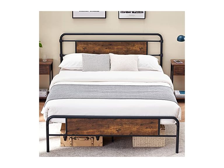 - (1) IDEALHOUSE 2024 Vintage 13 Inch Full Bed Frame - Strong Bearing Capacity Up to 3000 lbs with Rustic Vintage Wood Headboard, No Box Spring Needed, Non-Slip, Noise-Free, Black