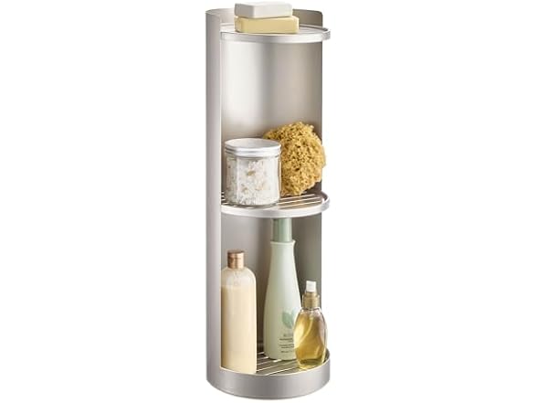 - VERSATILE STORAGE - Simply styled, the iDesign Rotating Bathroom Organizer provides 3-tiers of storage, giving your most reached-for bath accessories a home; Three circular shelves create a versatile catchall for a variety of items from cleaning products and toilet paper to shampoo and conditioner bottles and more; With just a single spin, a sleek cover conceals items on shelves for an aesthetically pleasing look