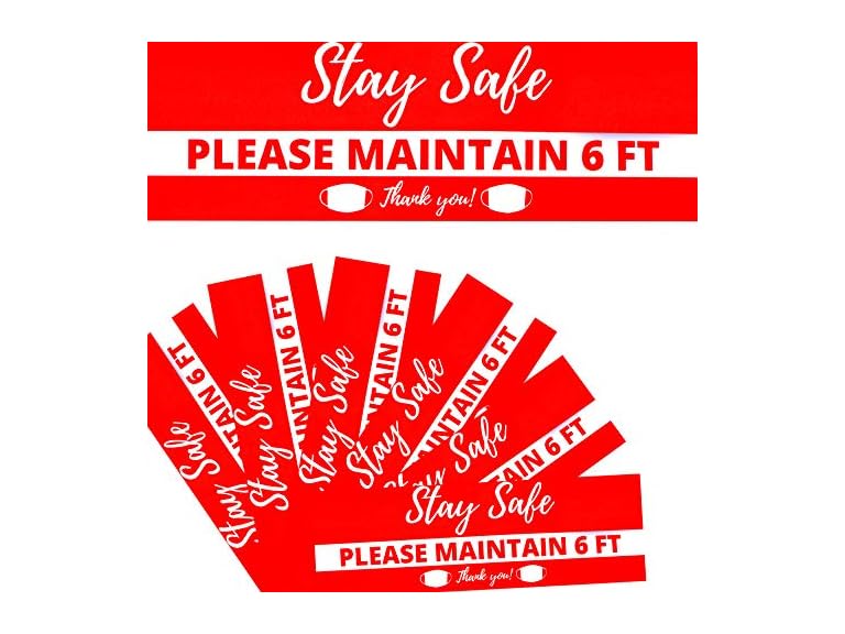 - (1) iDKAL Social Distancing Stickers | 12"x 4" Keep 6 feet Apart Distance Decals | Vinyl 6ft Apart Covid 19 Signage| Rectangle Face Mask Sign | Floor Wall Glass Safety Red Marker