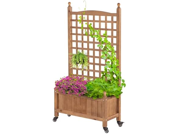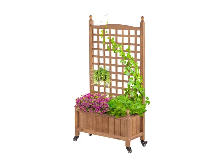 - SMOOTH ROLLING WHEELS: A trellis planter boxes with four wheels allows you to swivel your plants for better solar exposure. Two lockable wheels aid in keeping the raised garden bed with trellis firmly in place