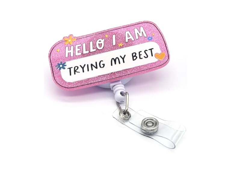 - (1) Thriano I'm Trying My Best Badge Reel Holder Retractable with ID Clip for Nurse Nursing Name Tag Card Funny Fun Nursing Student Teacher Doctor Medical Assistant Work Office Alligator Clip