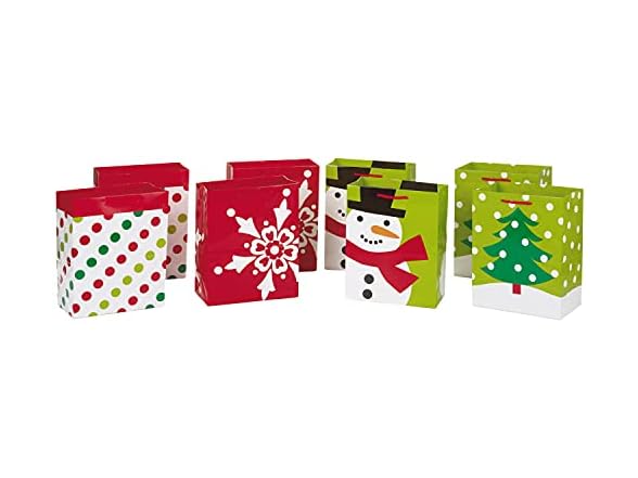 - Purchase includes eight medium gift bags with unique holiday designs.