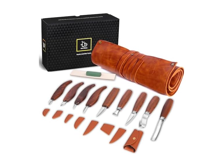 - 【Leather Tool Kit】: A wood carving tool kit ensures effortless and secure storage for your cutting and carving knives in the leather pouch. Each knife is carefully paired with its own protective sheath, enhancing the elegance and organization of the set. Experience the epitome of fine woodworking, making it a must-have for your artistic journey.