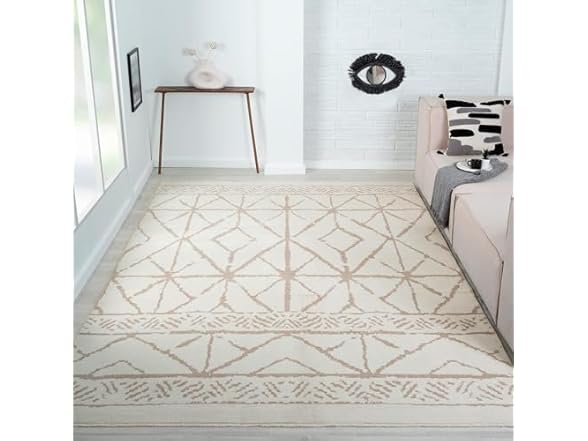 - MOROCCAN INSPIRED DESIGN: This neutral rug will be an eye-catching addition to your bohemian décor, featuring tan and ivory diamonds and patterned stripes with distressed details for a lived-in look.