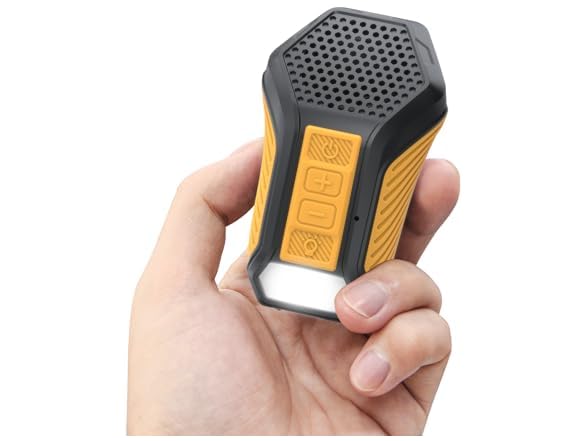 - 𝐖𝐚𝐭𝐞𝐫𝐩𝐫𝐨𝐨𝐟 & 𝐋𝐢𝐠𝐡𝐭𝐢𝐧𝐠: The built-in lighting provides both illumination and a warning signal, ensuring visibility and safety during cycling, outdoor activities, or nighttime use. With an IP65 waterproof rating and a durable hard shell, the speaker is protected during all your work and outdoor adventures.