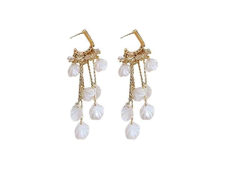 - (1) INGHOOD Zircon Dangle Shell Earrings - Fashionable and Elegant Design, Personality and Retro Style