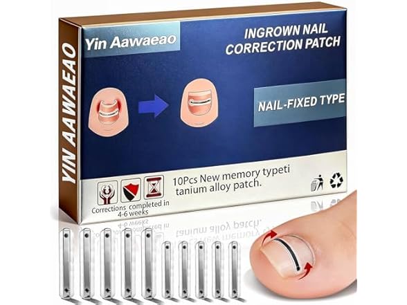 - REUSABLE 10-PIECE COMPLETE KIT:The ingrown toenail removal kit includes 10 replaceable titanium patches and all installation tools required for the entire correction cycle. Easy and fast installation, allowing for repeated use. Say goodbye to ineffective nail clippers, your ingrown toenail can be safely restored at home.