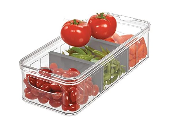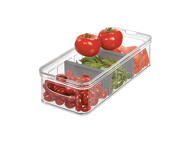 - PRODUCE SAVER CONTAINERS FOR REFRIGERATOR - Keep your produce crisp with the iDesign Large Divided Produce Storage Container; great for meal prepping, large food storage containers help keep small fruits and vegetables fresh while maximizing fridge storage