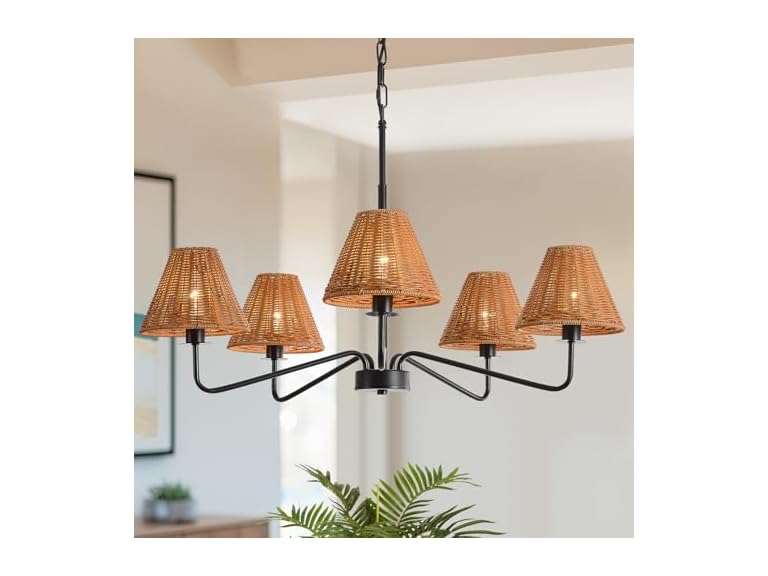 - 「Artisan Woven Craft」Unlike ordinary black farmhouse chandelier, this coastal chandelier showcases intricate hand-woven wicker craftsmanship. Skilled artisans meticulously weave natural rattan into the shades, resulting in a rustic yet sophisticated rustic pendant light with unique organic patterns. Durable and full of character.