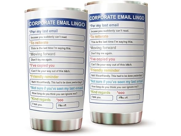 - (1) InterStellux Corporate Email Lingo Mug - 20 Oz Tumbler for Coworkers & Colleagues - Gifts for Women, Men & Employees on Birthday, Christmas