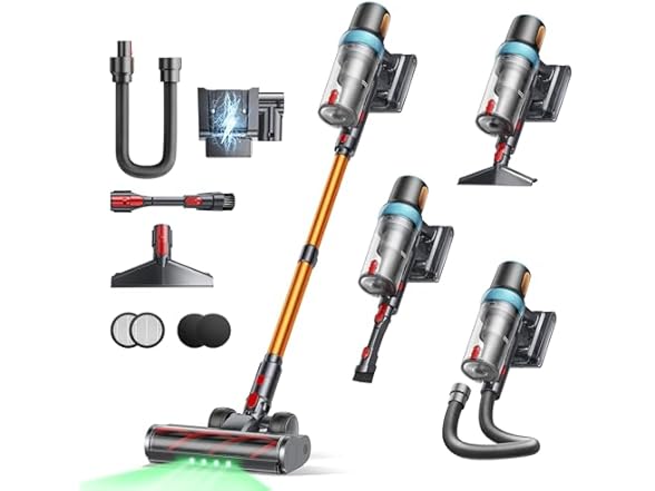 - ✨【Versatile 3.3FT Hose Accessories】This cordless vacuum comes with an extendable, flexible hose (Extends up to 3.3 ft), making it easy and powerful to clean high spots like ceilings and window curtains, as well as tight spaces under furniture or stairs—ensuring no corner is left untouched. It's perfect for comprehensive whole-home cleaning. Complete vacuum kit includes a stick cleaner, a motorized floor brush, sofa brush, 2-in-1 brush, extra HEPA filter, wall mount. Paired with handy accessories that can be used on a variety of surfaces, including stairs, curtains, sofa, bed, keyboards and car seats.