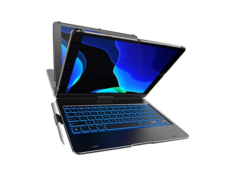 - Illuminated Typing - Type quickly and accurately on a laptop-like keyboard with a full row of iPadOS shortcuts and laser-etched keys that allow an adjustable 10-color RGB LED backlight to shine through.