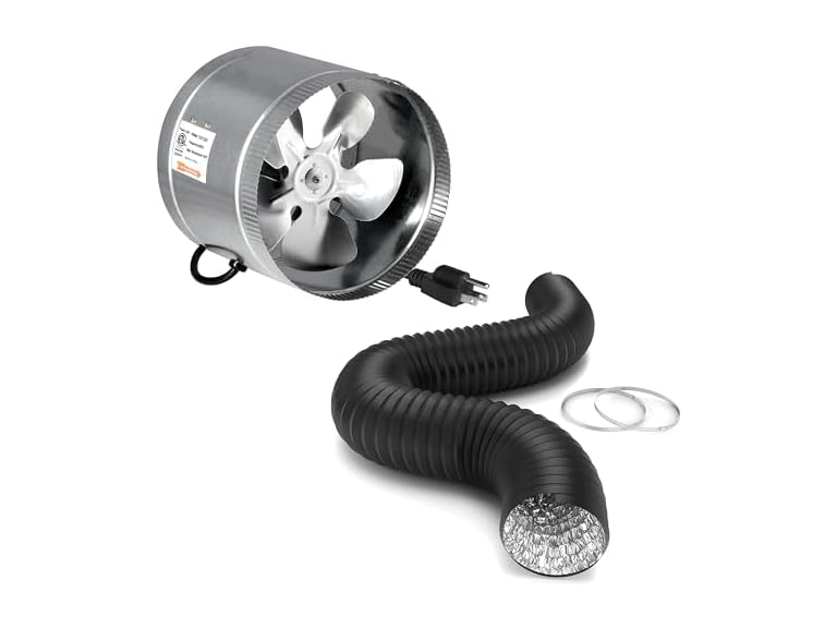 - Ducting: Size: 8 inch; length: 8 feet. Four-layer (PVC layer+aluminum foil+PET+aluminum foil) can prevent light leaks.Temperature range: -22°F~212°F(-30℃~100℃). High-quality aluminum foil, high temperature resistant and corrosion resistant, long lasting