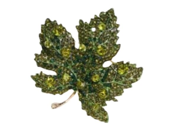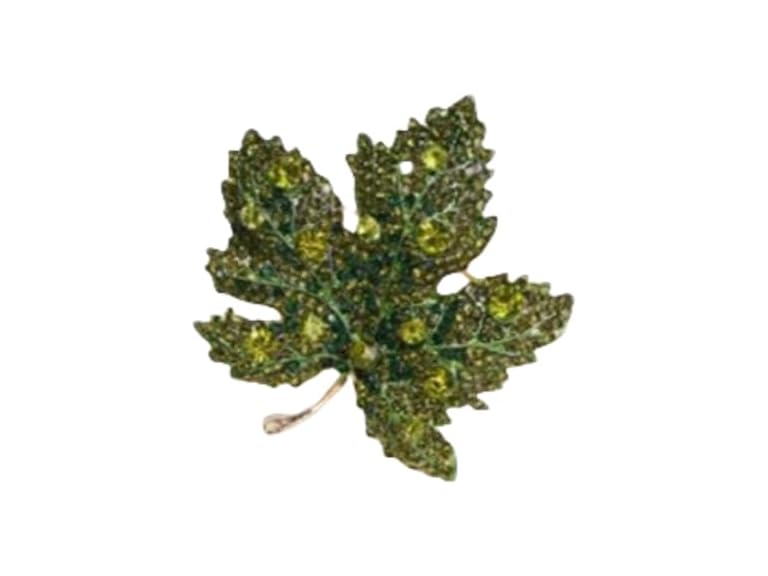 - (1) IS4U Vintage Maple Leaf Brooch Fashion Rhinestone Crystal Maple Leaf Brooch Elegant Temperament Coat High-End Pins Fall Clothing Accessories Thanksgiving Jewelry for Women (Green)