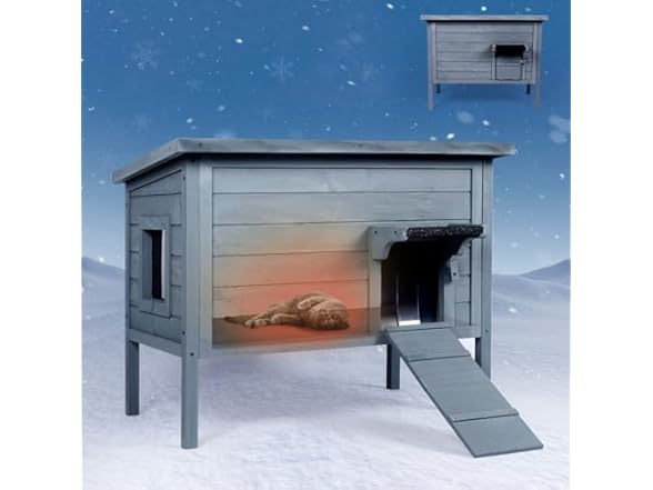 - (1) Ivy&Lane Outdoor-Cat-House | Insulated-Feral-Cat-Shelter | Weatherproof | for Winter | Foam & Wood | Large | for Multiple Cats | Fold-up Stair | Acrylic Window | Gray