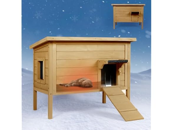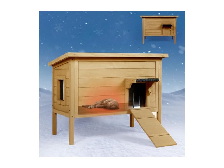 - (1) Ivy&Lane Outdoor-Cat-House | Insulated-Feral-Cat-Shelter | Weatherproof | for Winter | Foam & Wood | Large | for Multiple Cats | Fold-up Stair | Acrylic Window | Brown