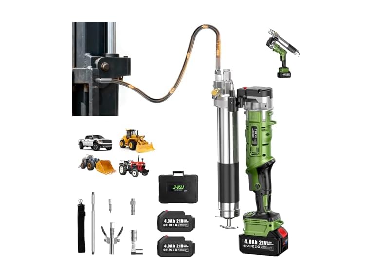 - ⚙️2-in-1 Power Modes – Twist to Switch, Work Smarter: The J-KU electric grease gun offers true versatility with dual operating modes. Instantly switch with a twist to tackle any lubrication job faster and easier. Cut greasing time by up to 90% for tractors, trucks, and heavy equipment