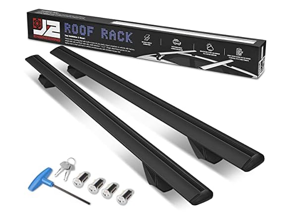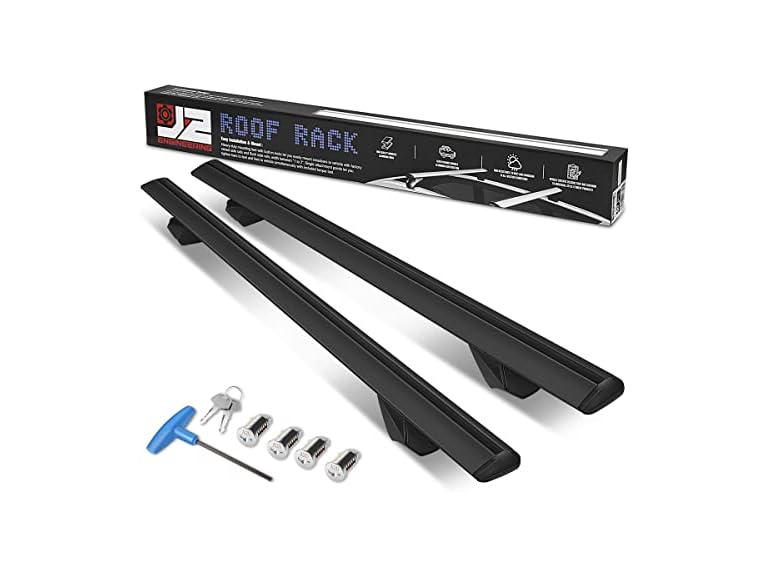 - (1) J2 Engineering J2-RR-120-BK Pair of 49" Aluminum Roof Rack Cross Bars Cargo Luggage Carrier for Raised Rails with Angled Edges, Universal, 32" - 48.5" Adjustable, Black