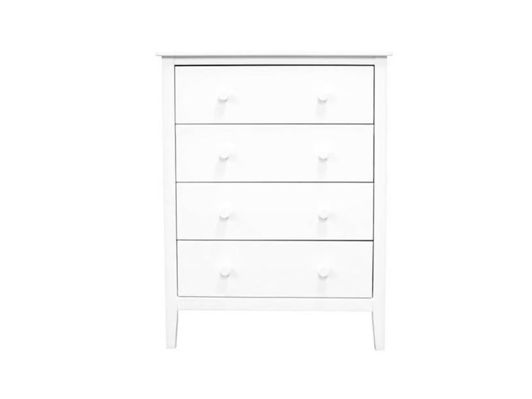 Solid Wood Construction - No Particle Board. Clothes and accessory storage. Holds family pictures to decorate as well as being functional. Easy to clean, wipe clean with cloth. Add the Jela Easy Pieces 4 Drawer Chest to your bedroom set for plenty of storage for your clothing and other important items. Easy to assemble with hardware included. The whole piece is constructed from solid pine and finished in white. Made from sustainable forests. For every tree cut, two are planted! Non-toxic rich white finish. Solid wood drawer pulls. Smooth running metal drawer glides. Finely sanded drawer parts avoid snags to clothing or linens. Traditional furniture construction - no funny fasteners. Suitable for use in many areas of the home. Back panels & drawer bottoms are T-MDF.