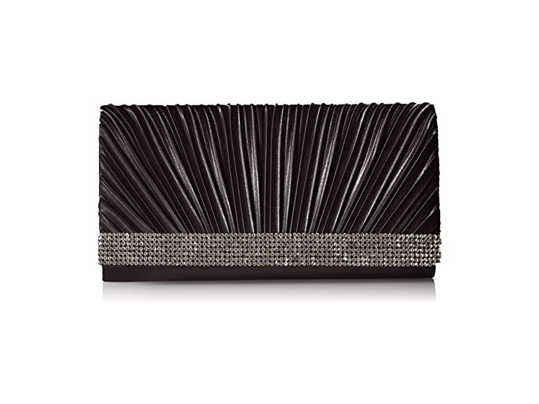 - SATIN PURSE WITH A MODERN FINISH: This evening purse bag is uniquely detailed, featuring a soft satin finish with elegant pleats and a rhinestone finish giving this bag that sparkle that works for both classic and formal attire as well as special night with your evening wear