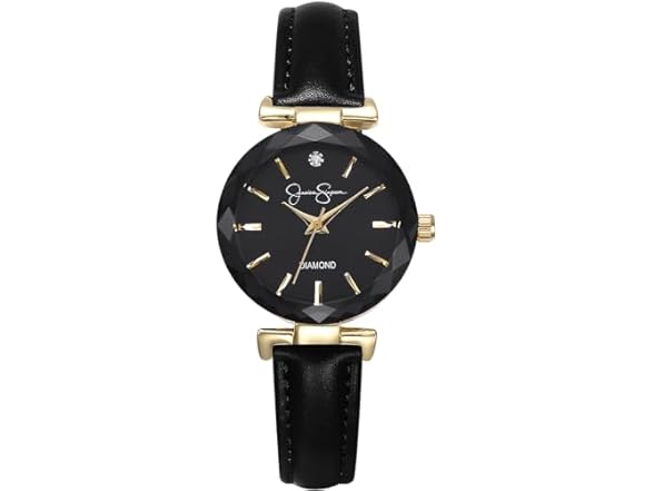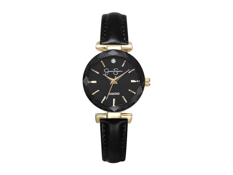 - Jessica Simpson Diamond Collection Women's Watch, Classic Quartz, Leather Band, Round Faceted Crystal Face, Elegant Dress Watch for Women