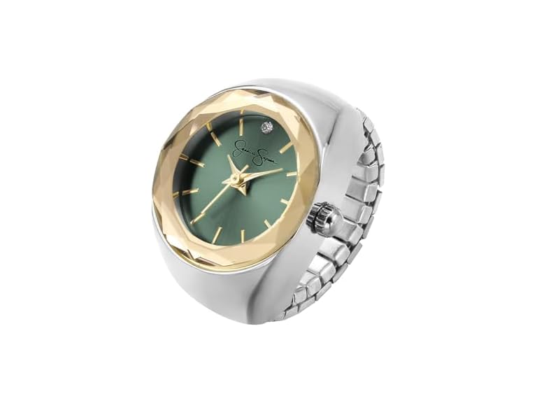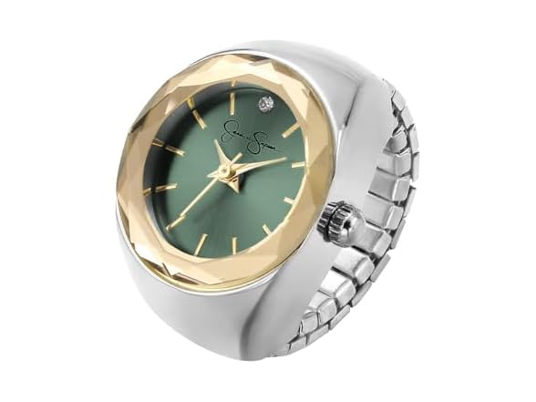 - Jessica Simpson Women's Silver Adjustable Ring Watch –Faceted Gold Bezel, Quartz Analog Mini Dial with Crystal, Stretch Band Fashion Jewelry Accessory