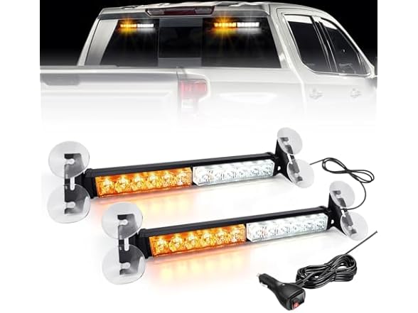- đăEASY TO INSTALLăConstruction lights for trucks Equipped with 4 adjustable strong and stability suction cups brackets, 8 strong suction cups, and 16.4ft long cable, you can easily install this 2 in 1 windshield emergency strobe lights on your rear/front windshield, and exterior of vehicles.