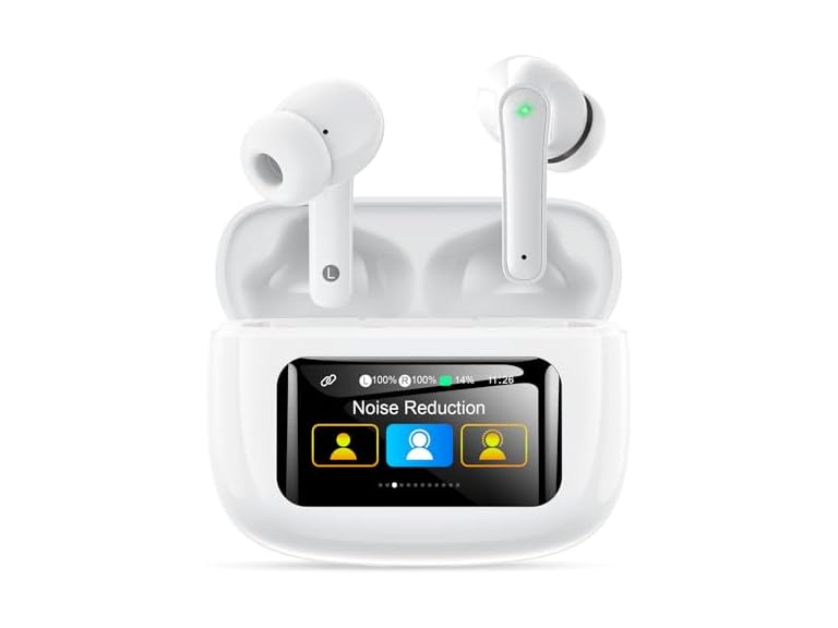 - Smart Wireless Ear Buds with Touchscreen Charging Case | Your Pocket-Sized Command Center: Take full control without touching your phone. Featuring a responsive touchscreen on the charging case, you can easily manage music, locate earbuds, skip tracks, control your camera, and more—all from the case itself. It’s not just storage; it’s your smart control hub on the go.