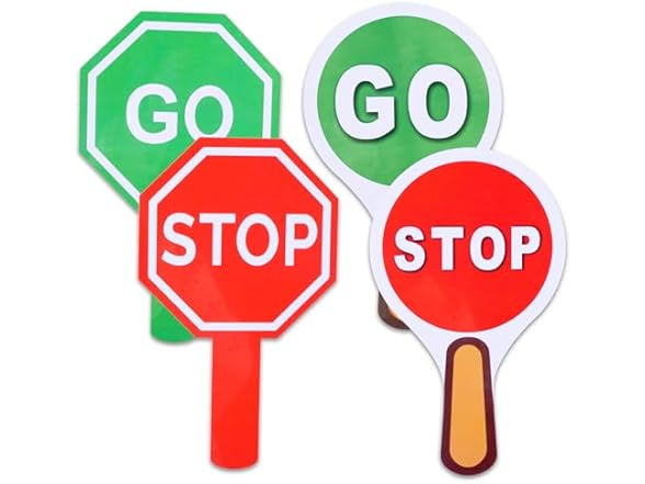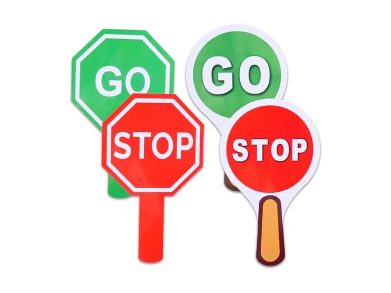 - 【Packaging Includes】You will get 4 pcs stop and go sign(2 round + 2 hexagonal)measures 9.8 x 5.9 inches.It is an ideal tool for teaching children to recognize traffic signals and learn about traffic and safety.