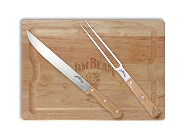 - [DURABLE PARA-WOOD CARVING BOARD] The carving board in this set is made of durable para-wood, making it safe for both raw meat and cooked food. It also features a built-in drip groove to catch any juices and prevent mess.