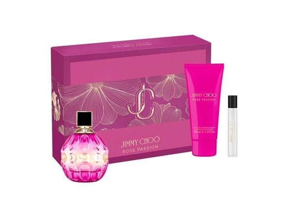 JIMMY CHOO ROSE PASSION 3 PCS SET FOR WOMEN: 3.4 EAU DE PARFUM SPRAY + 3.4 BODY LOTION + 0.25 EAU DE TOILETTE SPRAY