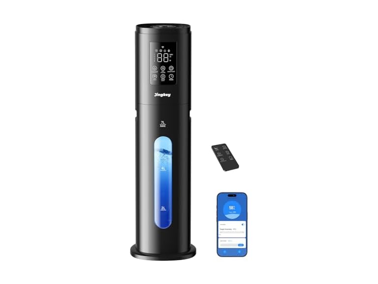 - 【Smart App & Remote & Touch Control】 : Connect the smart humidifier to the smart(TUYA) app to easily set up the large humidifier, you can control the air humidifier on your phone at any time. Adjust the humidity, timers, mist levels, night light and sleep mode. Large Room humidifier for bedroom also works with remote and touch control,You can create a moist and comfortable living environment at your own pace.(Only Support 2.4G Wi-Fi.)