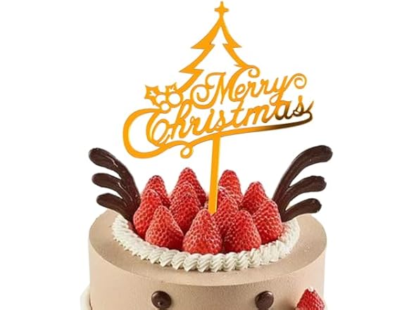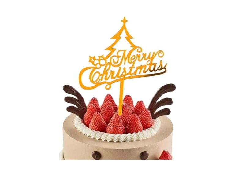 - (1) JIPSWL 1Pc Merry Christmas Acrylic Cake Topper Christmas Tree Cake Topper for Christmas Theme Birthday Party Dessert Decoration (Gold)
