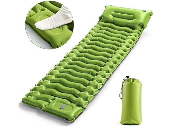 - โก ๐๐ง๐๐ฅ๐๐ญ๐ ๐ข๐ง ๐๐ฎ๐ฌ๐ญ ๐๐ ๐๐๐๐จ๐ง๐๐ฌ โ ๐๐จ ๐๐ฎ๐ฆ๐ฉ ๐๐๐๐๐๐: Tired of blowing up your sleeping mat or hauling bulky pumps? Our foot pump design inflates the sleeping mat in just 30-50 seconds with a few easy steps. No longer needs to be inflated by mouth or pump. And when it's time to pack up, it deflates in just one secondโquick, easy, and mess-free.