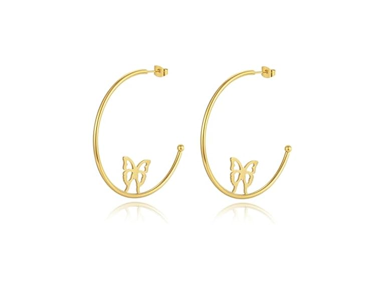 - 🧡 Large Butterfly Earrings 🧡 Elevate your style with our gold hoop earrings for women, adorned with a delicate butterfly drop, pattern, and vivid tiger eye stone. Make a unique statement and stand out in sophistication with these unique gold earrings.