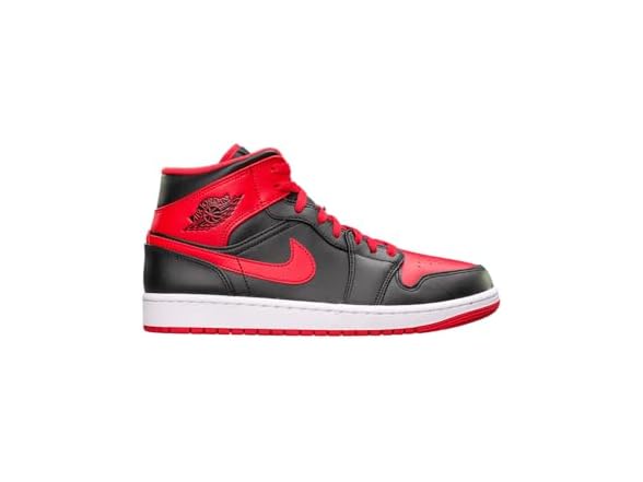 Dressed in a Black, Fire Red, and White color scheme. This offering of the mid-top Air Jordan 1 features a classic Black and Red leather build with Black mesh tongues and Red lining. Red and Black Jumpman branding on the tongues and insoles, respectively, with Black Wings logo atop a White midsole and Red rubber outsole completes the design.