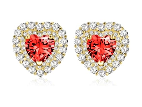 - (1) Joyssense Stud Crystal Heart Earring For Women,Graduation,Summer,Party.Birthstone,CZ Earring,Fashion Jewelry,14K Gold Plated,Gifts for Mother Daughter Wife Girlfriend,Red
