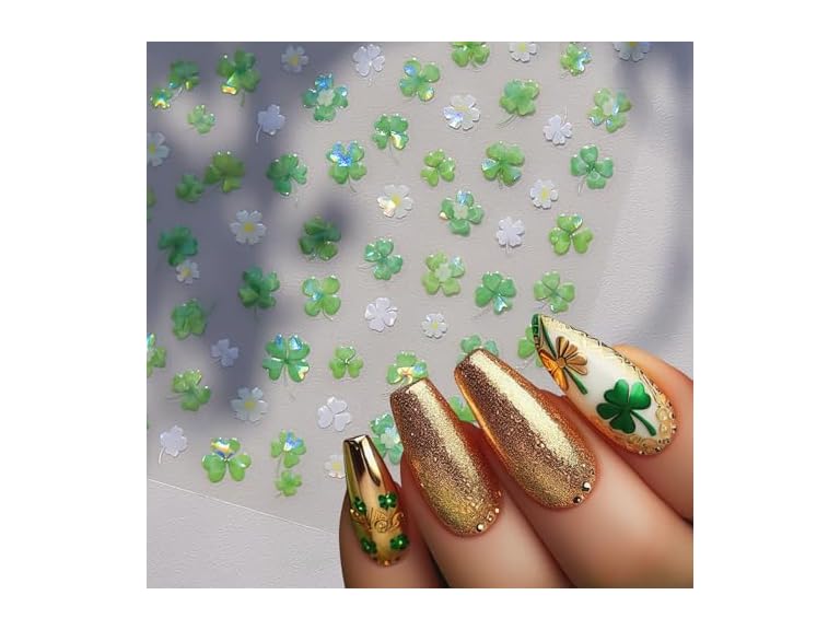 - Package Include:Green clover nail art stickers. Thicker than normal nail art stickers, make your nails more elegant and charming, give you an intuitive and delicate exquisite feeling