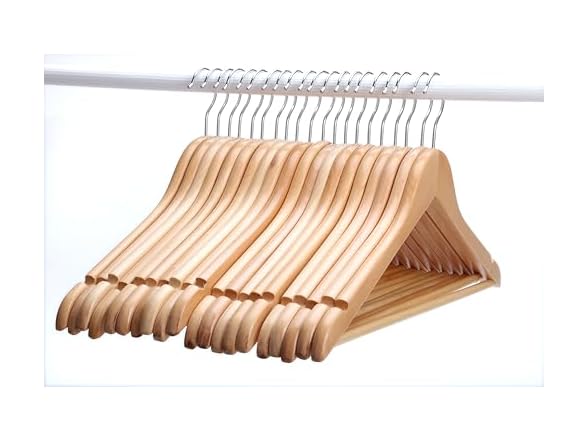 - JS Hanger 20 Pack Solid Wooden Hangers, Smooth Natural Finish Wood Coat Hangers with Swivel Hook & Notches for Suit, Shirt, Dress, Jacket, Pants