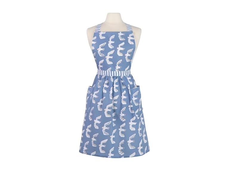 - - Jubilee's Birdie collection brings seaside charm to your kitchen with the Maisie Birdie Apron, featuring whimsical, hand-drawn birds in a delightful mineral blue palette.