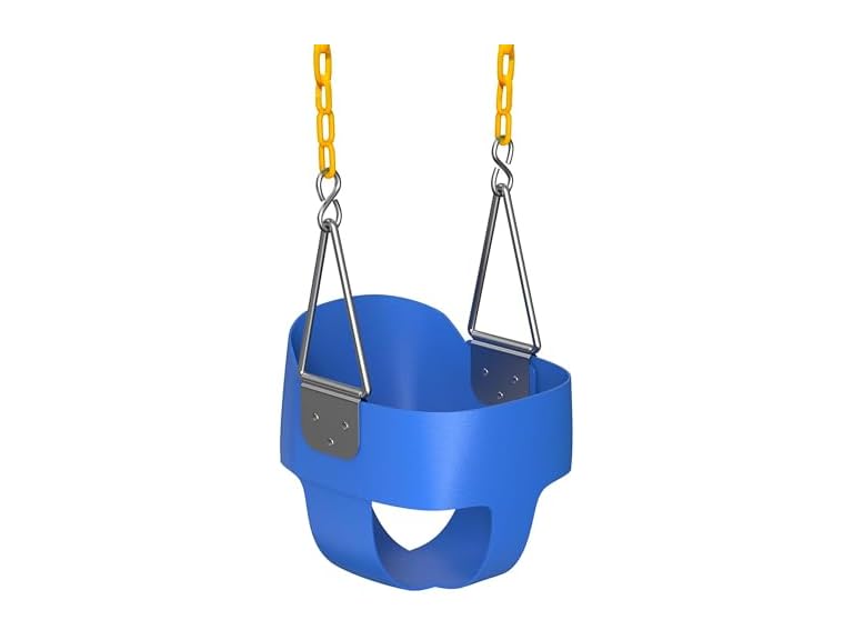 - FULLY ASSEMBLED - No setup needed! These toddler swings for outside come fully assembled with the bucket seat, chains, and carabiners to hang this swing on any play backyard set in no time.