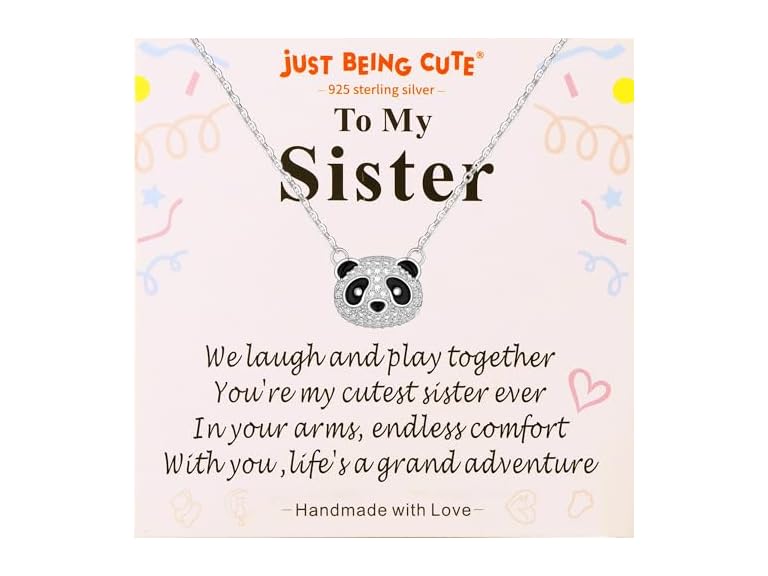 - (1) Just Being Cute Panda Necklace for Women, 925 Sterling Silver Cubic Zirconia Hypoallergenic Cute Necklaces Jewelry Panda Gifts for Girls Girlfriend Ladies-For Sister