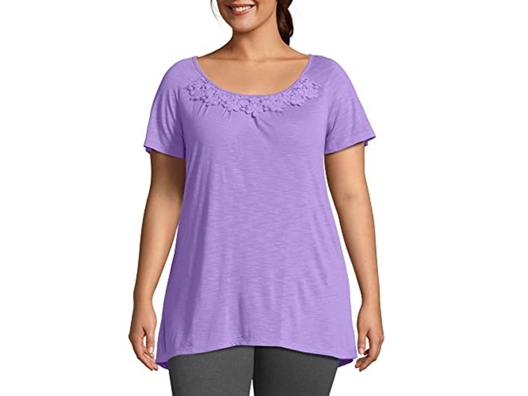 - (1) Just My Size Women's Plus-SizeSlub Jersey Tunic with Crochet Collar