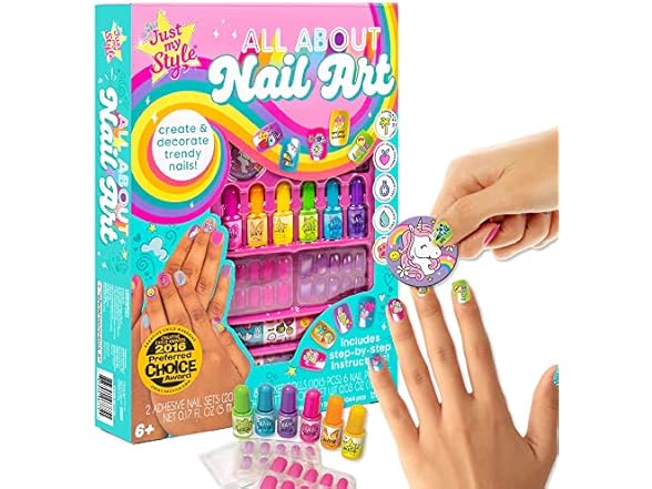 - GET YOUR NAIL ART ON: From vibrant polishes to adhesive nail sets and trendy nail decals, with the Just My Style All About Nail Art set, you have everything you need to get salon-style nails, right from home!
